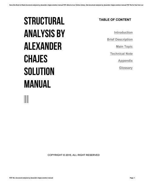 Read Structural Analysis By Alexander Chajes Solution Manual Kindle Editon By Click Button. Structural Analysis By Alexander Chajes Solution Manual it’s easy to recommend a new book category such as Novel, journal, comic, magazin, ect. You see it and you just know that the designer is also an author and understands the challenges involved with having a good book. You can easy klick for detailing book and you can read it online, even you can download it
